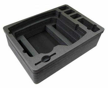 Кейс может быть укомплектован мягким наполнителем - поропластом (пенополиуретан), один рельефный слой в крышке, и несколько слоев в корпусе. Поропласт насечен кубиками со стороной около 10 мм для самостоятельного формирования выемок.